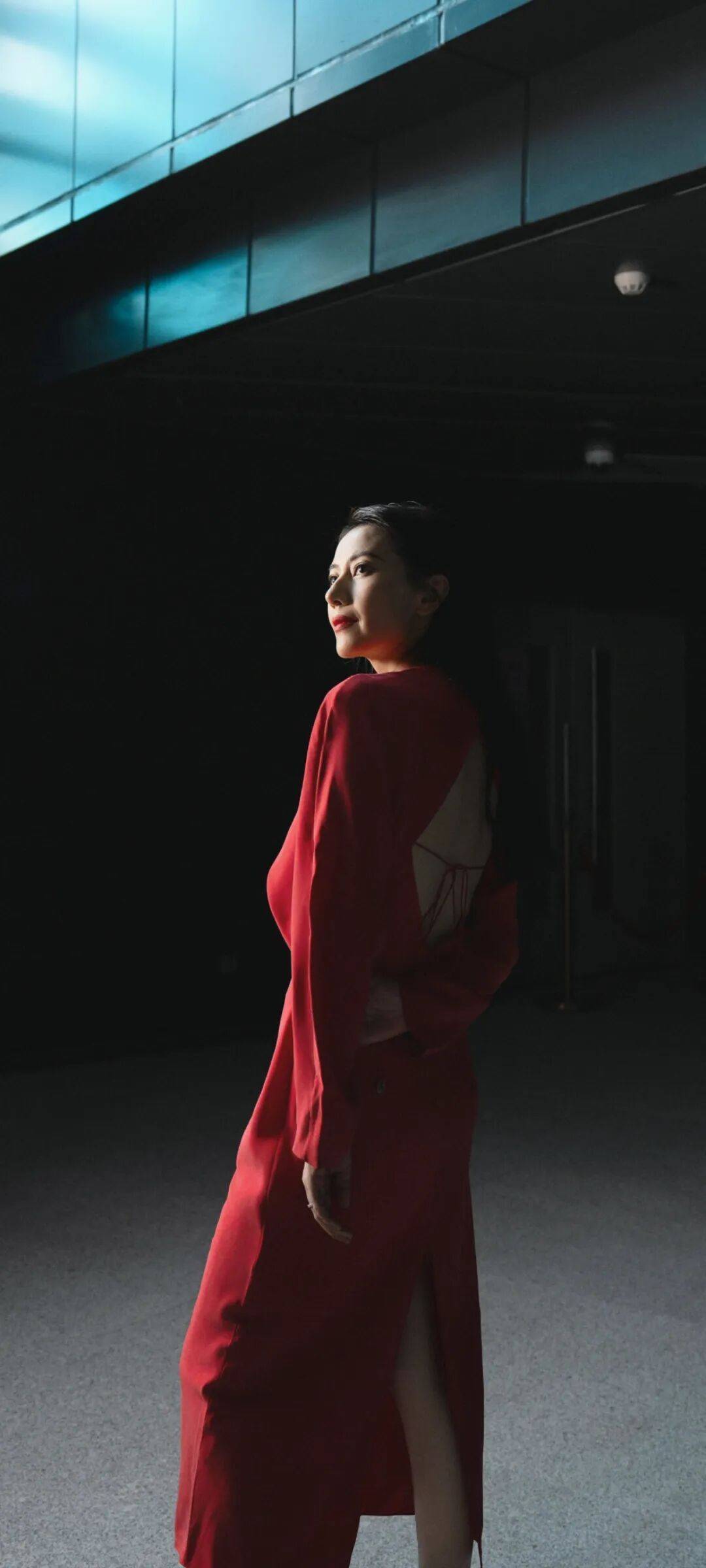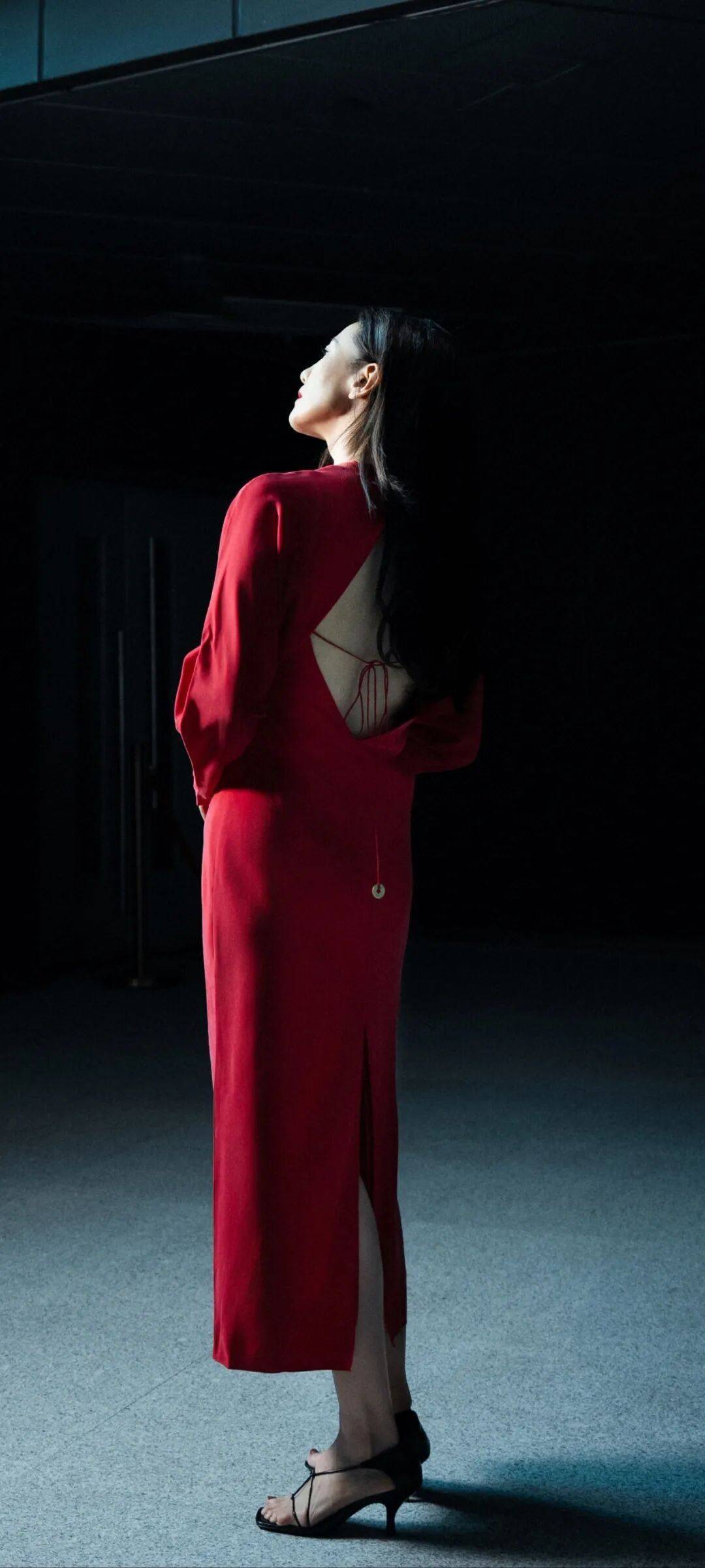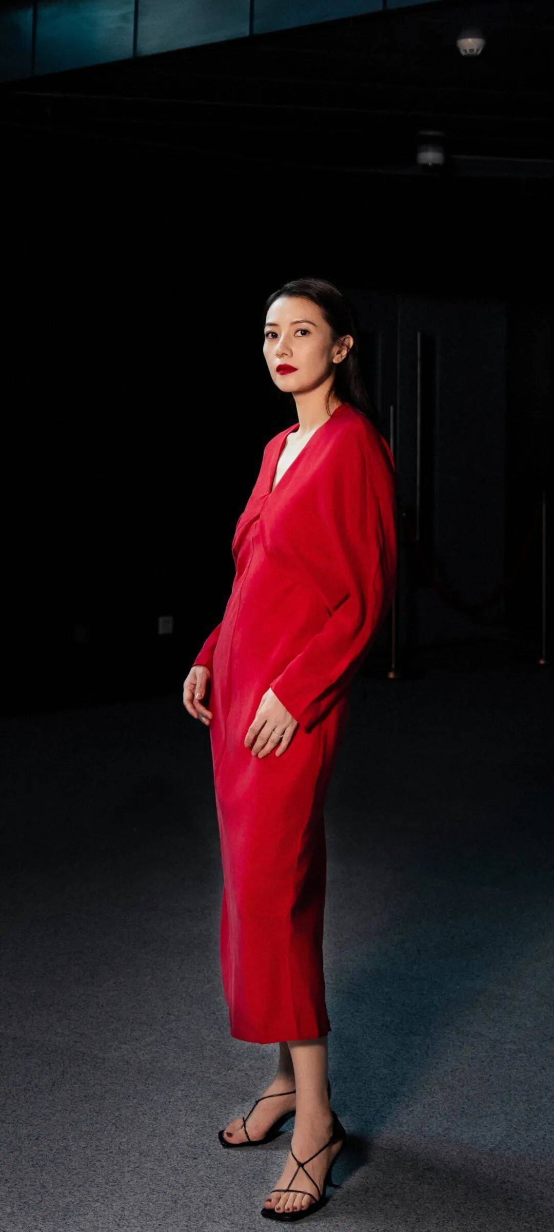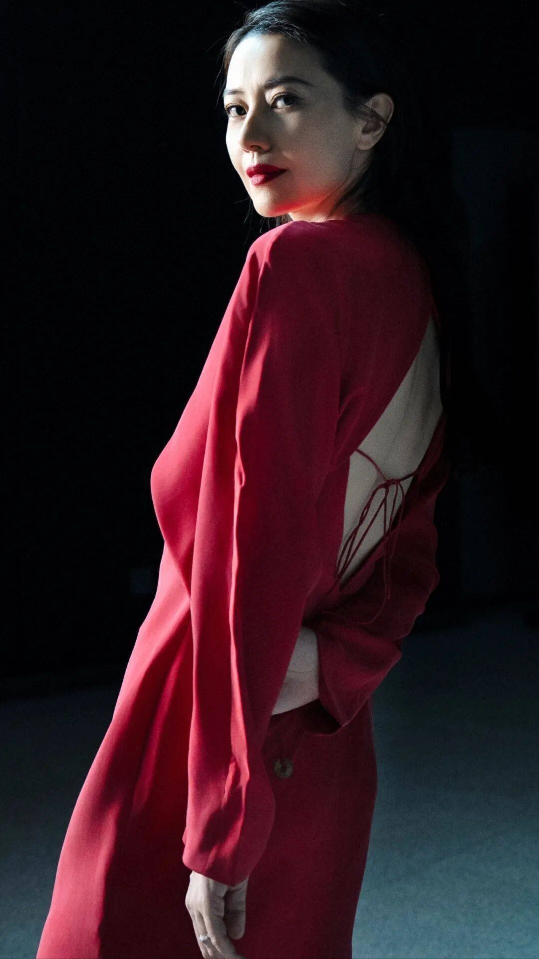 发型选择:顺滑披发+干净的中分,不做复杂造型,让红色在视觉上成为绝对主角。